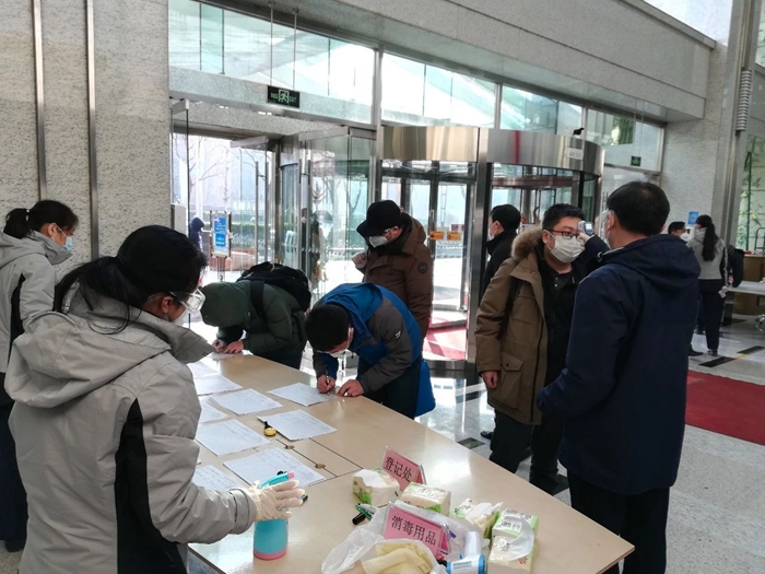 2月8日,東城區(qū)安全生產(chǎn)監(jiān)察、社區(qū)警務(wù)工作站、樓宇工作站聯(lián)合對拓展公司燈市口商務(wù)樓疫情防控工作進(jìn)行檢查。商務(wù)樓自1月24日開始啟用《樓內(nèi)進(jìn)入人員的體溫和進(jìn)出事由登記表》,2月3日起統(tǒng)計《客戶上班、返京情況和基礎(chǔ)信息表》,制定《復(fù)工后疫情防控期間工作方案》等文件材料。經(jīng)過認(rèn)真深入的檢查,檢查組對項目部全面有序的防控工作給予了充分肯定,同時就向返京客戶人員下發(fā)《健康承諾書》等后續(xù)事項提出明確工作要求。