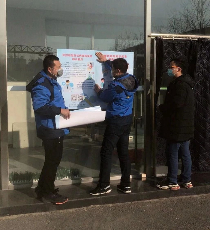 2月3日,北搪商務(wù)大廈商務(wù)中心的全體員工,在負(fù)責(zé)人朱娜的帶領(lǐng)下,檢查并協(xié)助物業(yè)管理公司對辦公區(qū)域進(jìn)行消毒和清潔,對12層以下的客戶進(jìn)行摸底排查,挨家挨戶進(jìn)行在崗人數(shù)調(diào)查并記錄上報事業(yè)部,在暫時無人辦公的客戶門上張貼關(guān)于做好疫情防控的緊急通知,同時以電話或微信方式,將通知有關(guān)內(nèi)容傳達(dá)給客戶,提示加強(qiáng)對去往疫情高發(fā)地區(qū)及接觸過疫情高發(fā)區(qū)的員工的教育,做好相應(yīng)隔離防護(hù)措施,隨時溝通各自單位的防疫工作的最新動態(tài)。
