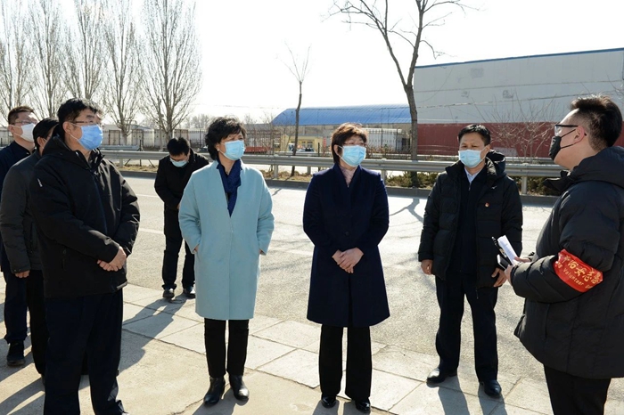 3月13日下午,市國資委黨委副書記、副主任晉秋紅前往大興區西紅門鎮振亞莊村,現場調研北化集團疫情防控和下沉干部工作情況,并向振亞莊村捐贈防護物資和慰問品。北化集團黨委副書記吳瑞峰向晉秋紅一行介紹了集團公司復工復產情況,并就集團公司承擔的七項疫情防控保障任務作了簡要介紹,北化集團團委副書記、下沉團隊臨時黨支部書記聶晶匯報了下沉駐村干部工作情況。