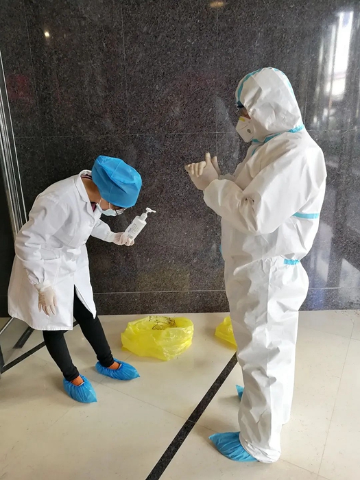 “我是黨員,我先來”,時(shí)間緊任務(wù)急,作為一名黨員率先垂范,周麗麗勇敢地接下送餐和垃圾收納任務(wù)。為確保完成一日三次的送餐和垃圾收納工作,周麗麗每次都要全副武裝穿上防護(hù)服,并嚴(yán)格按照要求進(jìn)行消殺。俗話說隔行如隔山,從未接觸過防護(hù)服,其穿脫過程異常艱難,但周麗麗不怕麻煩。為了防止交叉感染,隔離區(qū)域的電梯停止使用,每次賓館人員送餐都要爬樓梯將餐飲搬到樓梯間,然后由全副武裝的周麗麗徒步一個(gè)房間一個(gè)房間地配送。送餐完畢,還要一個(gè)房間一個(gè)房間地收納垃圾。由于防護(hù)服不透氣,剛一行動起來,周麗麗已經(jīng)渾身是汗,但是她沒有退縮,每次都保質(zhì)保量按時(shí)完成了任務(wù)。在數(shù)日的時(shí)間里多次進(jìn)入隔離區(qū),圓滿地完成了任務(wù),真正做到了關(guān)鍵時(shí)刻站得出來,危急時(shí)刻豁得出來。