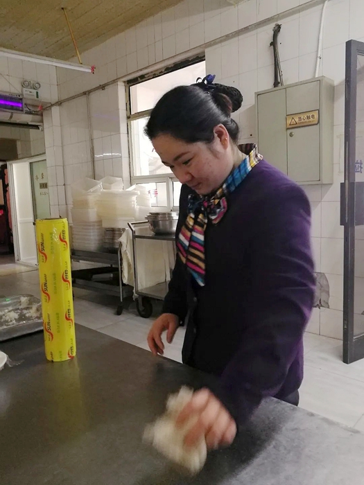 周引萍原籍甘肅,從春節(jié)起一直沒有返鄉(xiāng)休假,在這段緊張而忙碌的時(shí)間里,賓館洗碗工因疫情未歸,周引萍就主動擔(dān)負(fù)起洗碗工作。每日的洗碗消毒,看似沒有平時(shí)的工作量大,但因?yàn)橐蟾摺?biāo)準(zhǔn)高,要經(jīng)過嚴(yán)格的消毒程序,幾天下來,她的雙手出現(xiàn)了脫皮現(xiàn)象,而且長時(shí)間的彎腰,讓她的腰酸痛不已,要許久才能恢復(fù)體力。就是這樣,她從未想過退卻,從未提過苦和累。