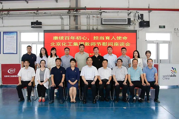 9月10日,在第37個教師節到來之際,北京化工集團黨委書記、董事長王國華,黨委副書記吳瑞峰專程來到技師學院,看望慰問教師和教育工作者,向老師們送去教師節的問候,并與教師代表親切交流。技師學院領導班子成員和教職工代表參加座談會。