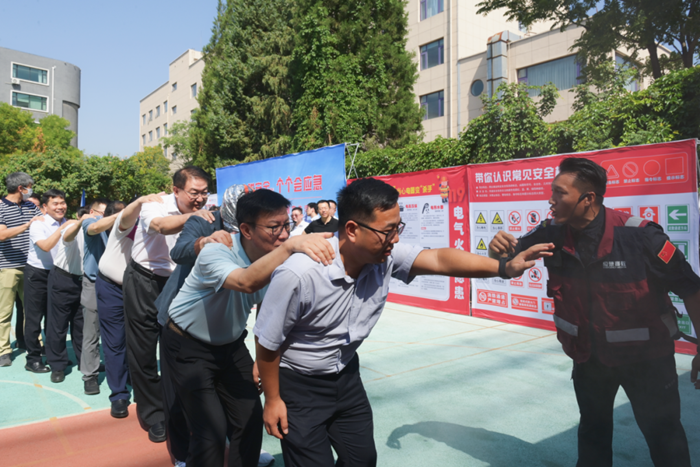 6月30日上午,北化房地產(chǎn)公司、北京化工集團(tuán)安全環(huán)保部、總部黨委在華騰發(fā)展大廈共同組織了消防疏散演習(xí)及安全咨詢體驗(yàn)活動(dòng),集團(tuán)總部干部職工及商廈入駐企業(yè)150余人參與。北京化工集團(tuán)黨委書記、董事長王國華,黨委副書記、總經(jīng)理陳宇到場觀摩指導(dǎo),集團(tuán)領(lǐng)導(dǎo)班子及高管人員共同參與體驗(yàn)。
