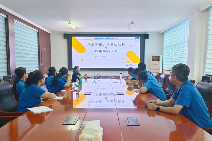 為進一步提升青年職工質(zhì)量意識,強化質(zhì)量管理水平,9月21日,華騰橡塑安徽華騰公司以青年實訓基地為平臺開展質(zhì)量標準專項培訓。安徽華騰質(zhì)量部部長吳琴梅圍繞生產(chǎn)流程、生產(chǎn)全過程檢驗、產(chǎn)品質(zhì)量檢測等多方面內(nèi)容,結合實際案例進行了詳細講解。